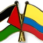 Palestine and Colombia Flags on Gold Pin Symbolizing Solidarity