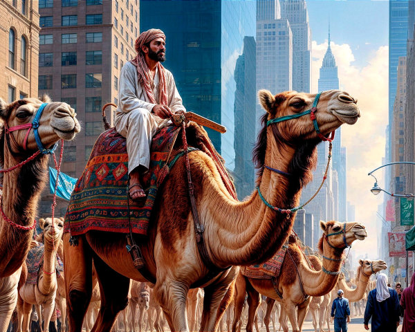 Two majestic horses, one white and one chestnut, gallop through a vibrant landscape filled with colorful flowers. In the background, majestic mountains and a starry sky create a magical scene.