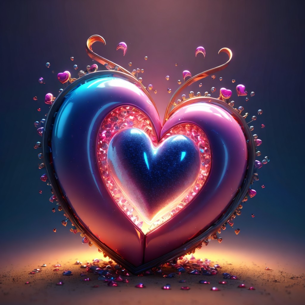 Vibrant Heart Artwork with Gold Accents and Gems