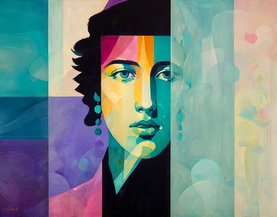 Prompt: misted skies imagining you as a dream. Abstract in the style of John Lavery blended with the aesthetics of Charles Rennie Macintosh. Drawn with an acrylic paint swipe technique