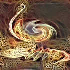 A surreal landscape features a glowing celestial orb suspended above a quaint village, with winding paths, mystical trees, and a starry night sky, blending fantasy and dreamlike elements harmoniously.