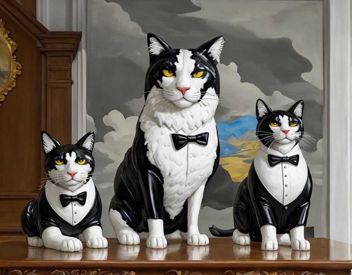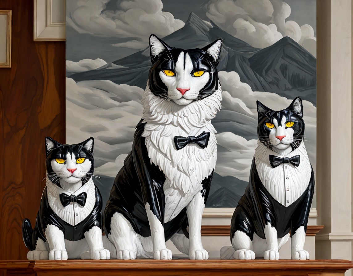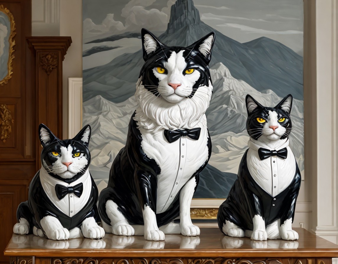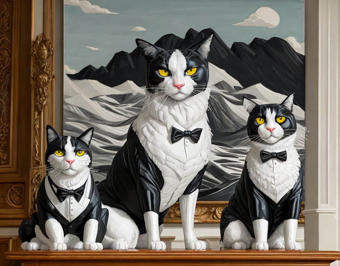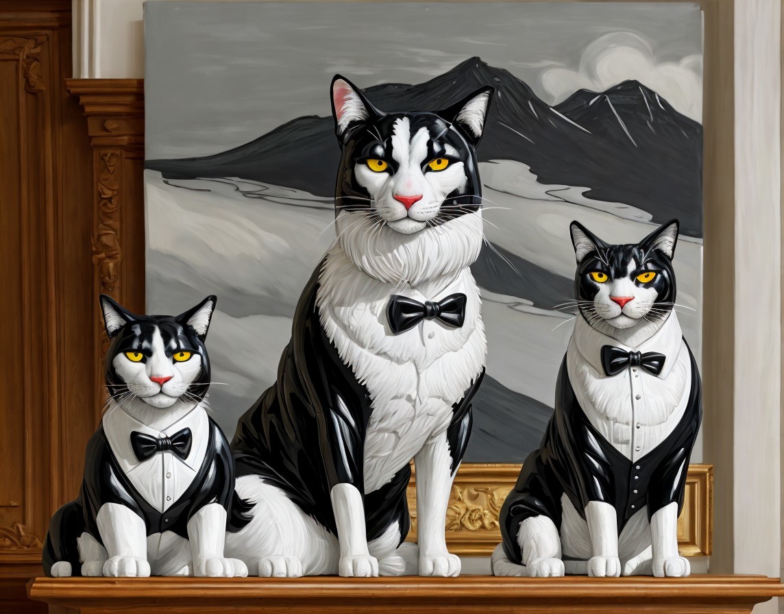 More about Portrait of 3 elegant felines posing in a licorice and mint setting