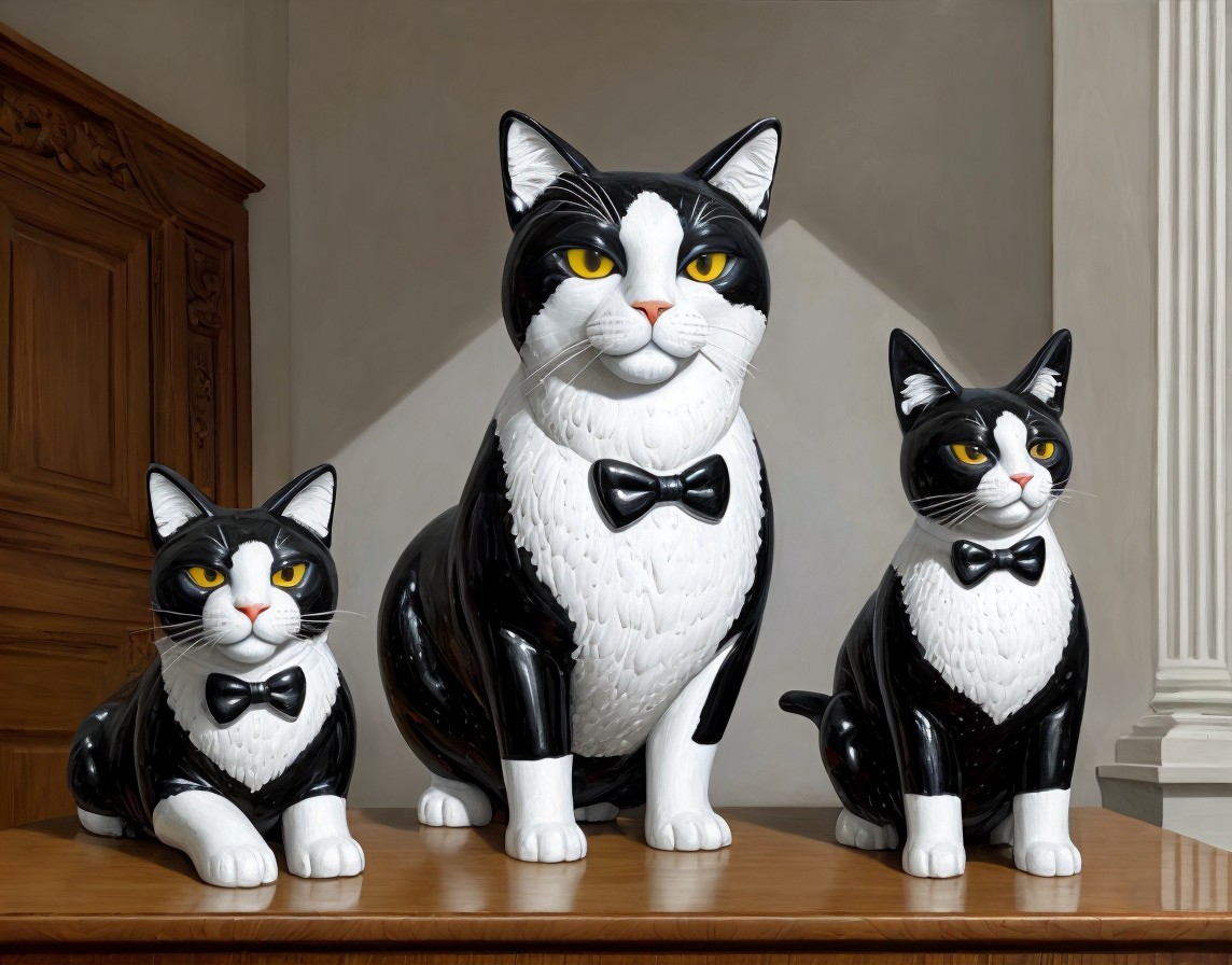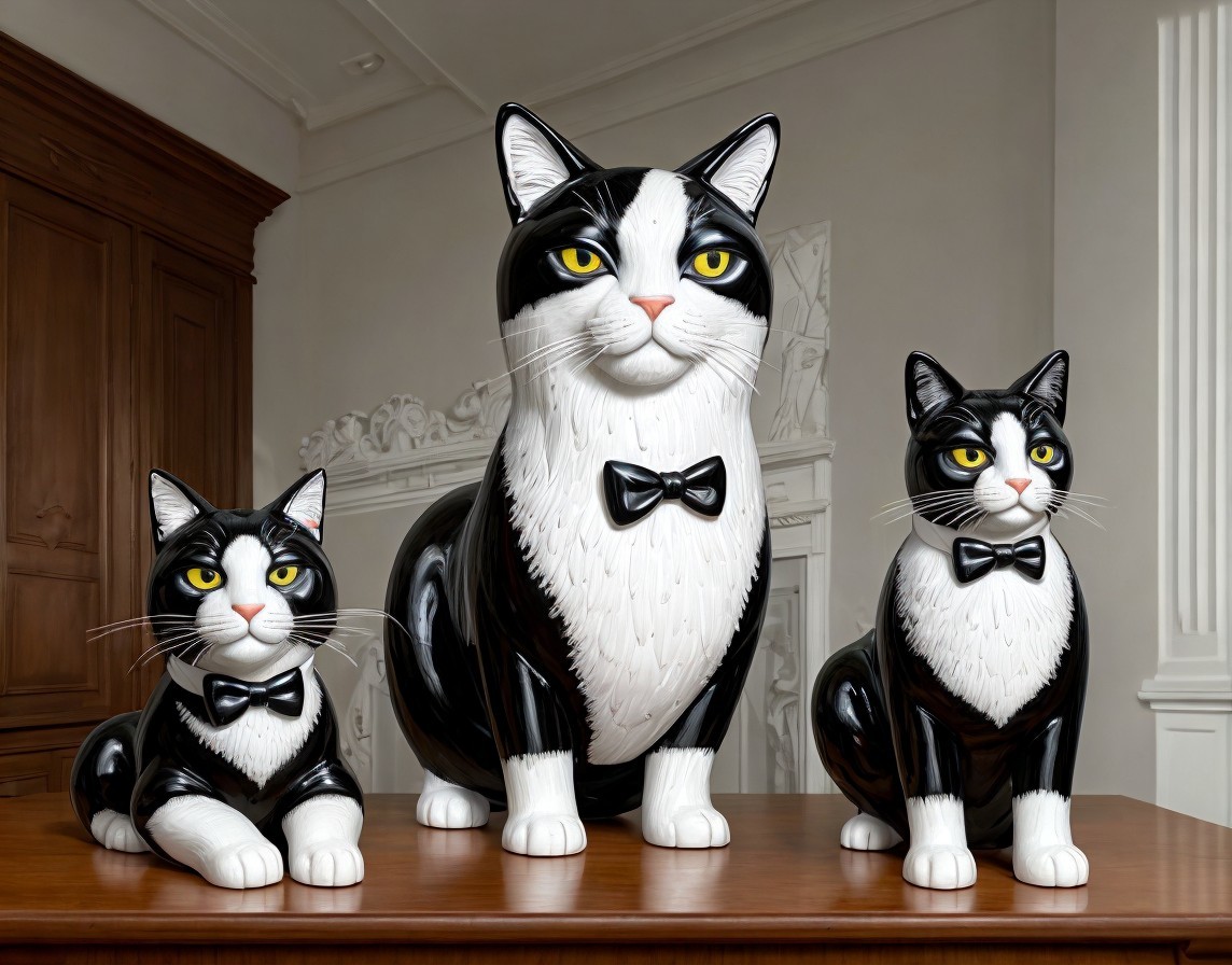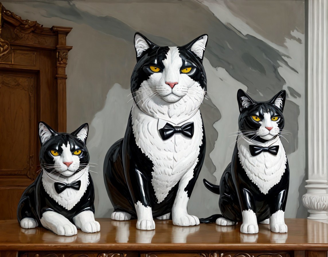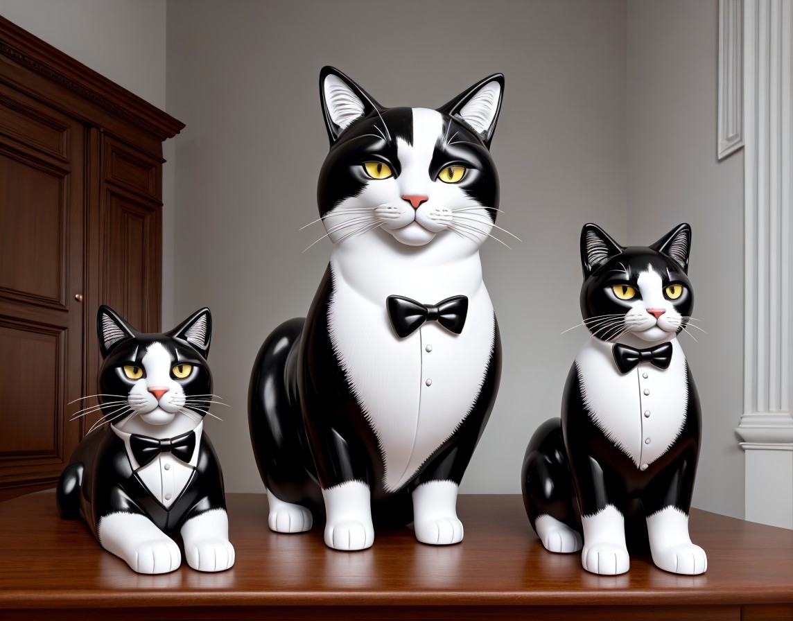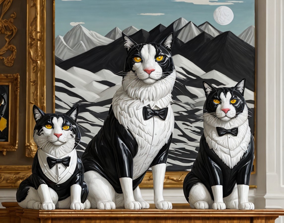 More about Portrait of 3 elegant felines posing in a licorice and mint setting