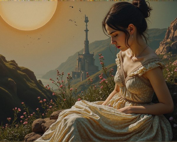 Ethereal Figures in Fiery Hair Amidst Vibrant Colors Vibrant Abstract Composition with Ethereal Figures Mesmerizing Landscape of Curved Sand Dunes Stylized cityscape with abstract female face and sunset Serene Woman with Red Hair in Cityscape Setting Surreal Giant Figure in Urban Cityscape with Fountain Surreal Night Scene with Rat and Cats in Abstract Setting Black Statue of Couple in Snowy Landscape Futuristic Woman with Circuitry in Urban Landscape