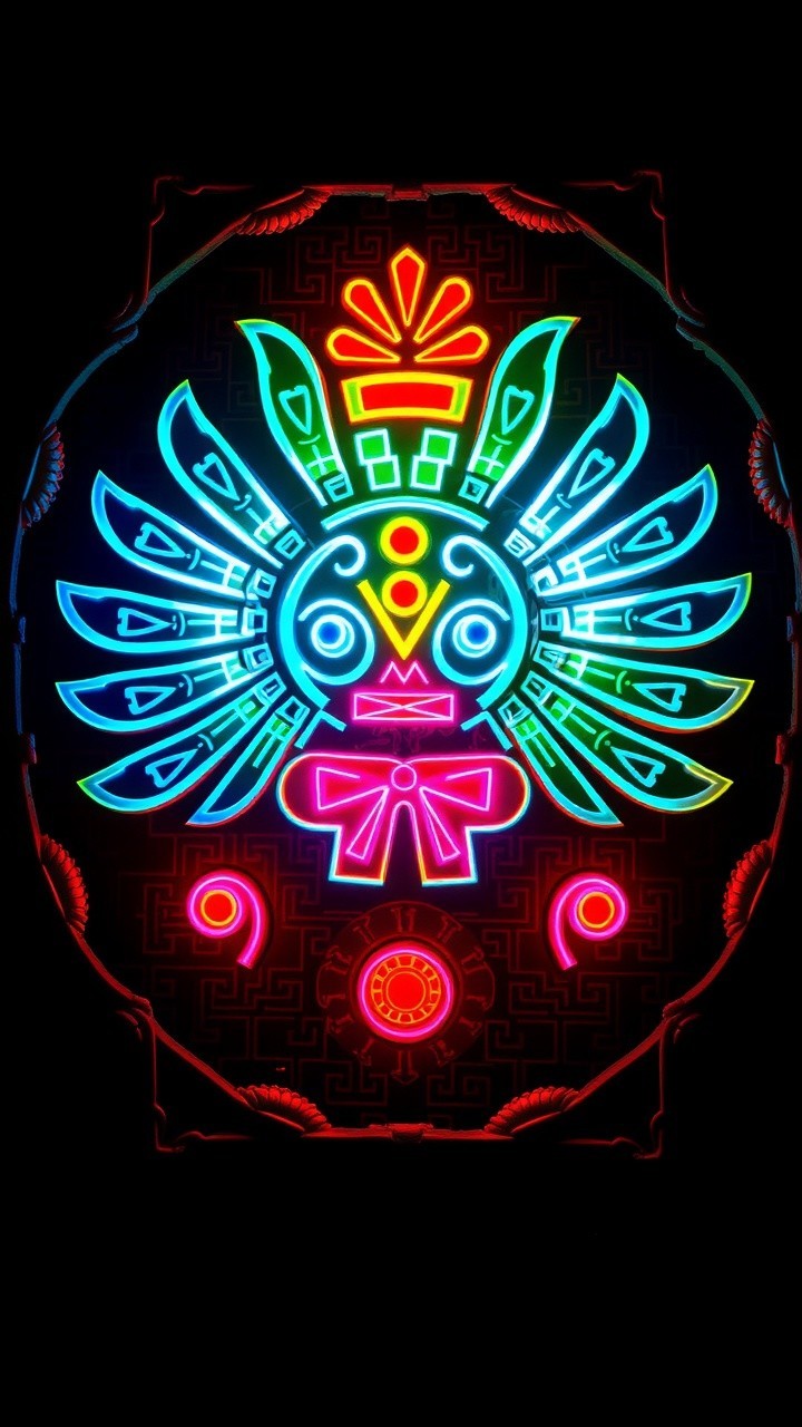 Mictecacihuatl Neon Hieroglyph: A Technicolor Fusion