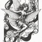 Mystical Woman with Wings in Black-and-White Art
