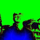 The image showcases an abstract landscape with vibrant green and deep blue hues, featuring winding paths that suggest movement or flow, blending natural and cosmic elements in striking colors.