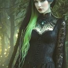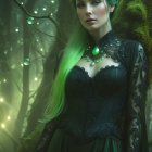 Upper body portrait in enchanted forest by Bob Eggleton, forestal details with glowing mystical fog, shimmering dew drops & vibrant floating orbs, intricate cascading soft green pastel color palette, mip-mapping for dreamy lighting, ethereal and surreal ambiance, hyper-realistic details, dreamlike atmosphere, by Micheal Cheval, graphic iconography reference, displacement mapping 1.3, polychromatic anthotype print, black brushstrokes adding depth, hues by Man Ray, line-art, thick textured layers, contoured, tactile feel, simplistic features, intricate detailing, warm coloring enhancing the fantasy ambiance. vivid coloring, close-up, slightly sculpted, flowing hair illusion, dethereal atmosphere, 5 layers of dof, liminal stencil, luminism, plasticity 1.6, high resolution, color palette of metallic silver, deep blacks, hints of neon green and gradient inking colors of sea-green and lawn-green, very dramatic lighting casting shadows and highlights, cel-shaded, sculpted, retrofuturistic, divisionism. smeary, graphic emphasis, forestal and natural iconography reference, anthotype print, black brushstrokes adding depth, hues by Man Ray, line-art, thick textured layers, contoured, tactile features, intricate detailing, warm coloring enhancing the fantasy ambiance. vivid coloring, close-up, slightly sculpted, flowing hair illusion, dethereal atmosphere, layers of fabric, gradient inking, inkpunk, stippled textures, novelty architecture, decorative,, elegant, graphic novel,, displacement mapping 1.9, ambient occlusion 1.3, parallax occlusion 1.5, fantasy iconography, cel-shaded, sculpted, retrofuturistic sgraffito, divisionism, triadic color scheme, whimsical complementary colors, overexposed background, negative lucas numbers, dof, debeh, bokeh, brightness 1.3, subsurface scattering 1.5, assemblage art, fractured linework, otherworldly dynamic lighting, squiggly line-art features, tall and stacked lines, dof, bokeh, debeh, negative lucas numbers, cyberpunk theme, banging, scruffy, retrofuturistic, supernatural vibe, exuding joyful pencil sketch art blend, painterly style, rich and saturated colors, bold brushwork, campy elegance,