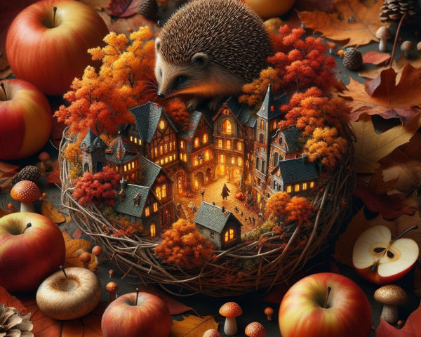 A whimsical figure stands amid autumn leaves, illuminated by a full moon. Dressed in sheer, flowing attire, she exudes enchanting elegance and charm in a mystical forest setting.