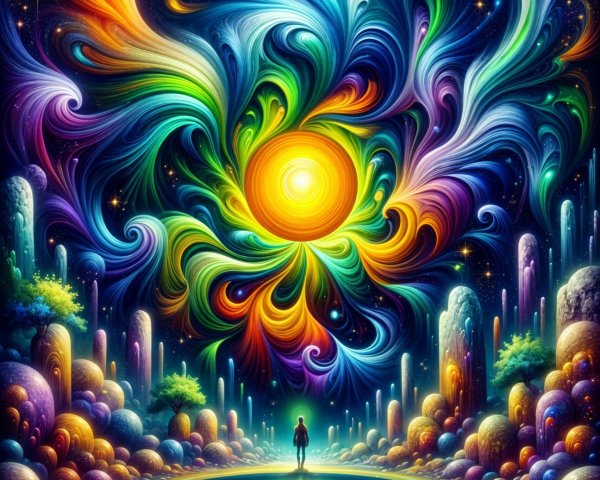 A mesmerizing portrait of a woman with her hair seamlessly blending into a vibrant, floral landscape with a waterfall.