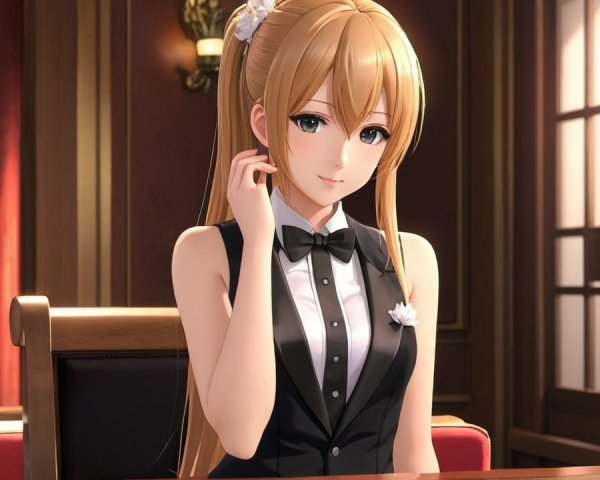 A charming anime girl showcases a playful trigonometry-themed swimsuit, adorned with vibrant geometric patterns and symbols. Her cheerful expression and lively pose bring math to life in a fun, imaginative way.