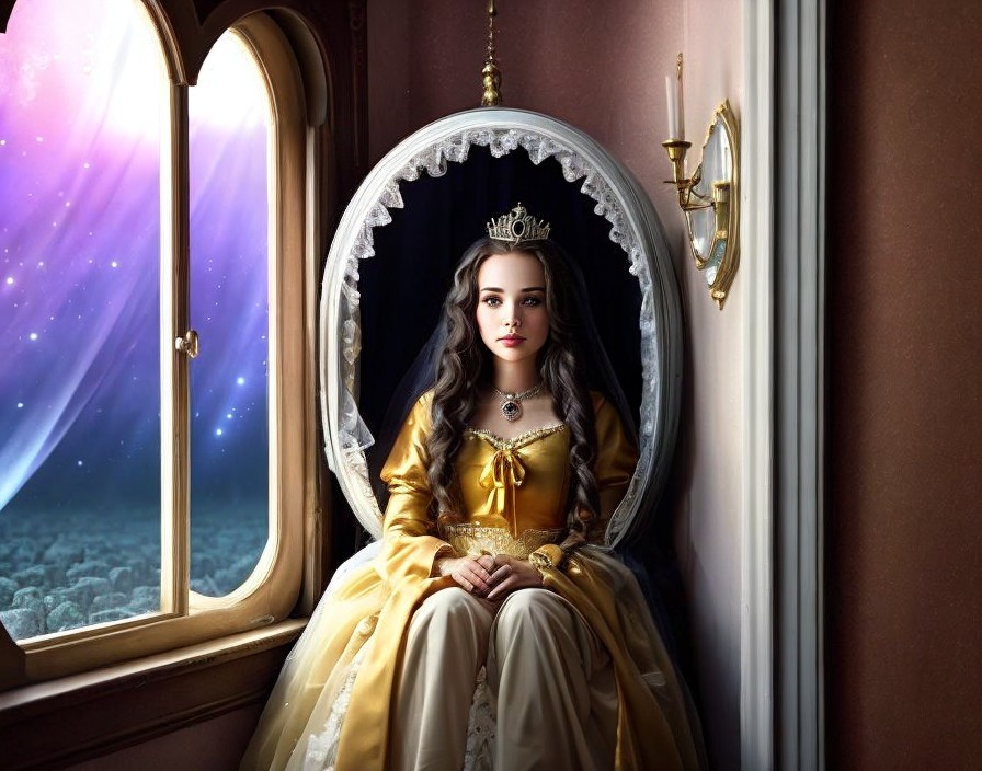 I was playing around without any particular outcome in mind. Seriously, though, what is she wearing on her head? Is that part of a curtain and a tiara made from a picture frame? Kids these days are so edgy.