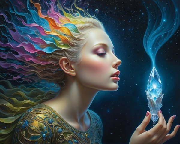 A stunning fantasy scene featuring a woman in a lavish gown adorned with roses, surrounded by two majestic dragons. She holds a small dragon, set against an ethereal, icy backdrop.