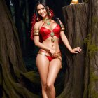 Young Woman in Pink Bikini in Lush Jungle Setting