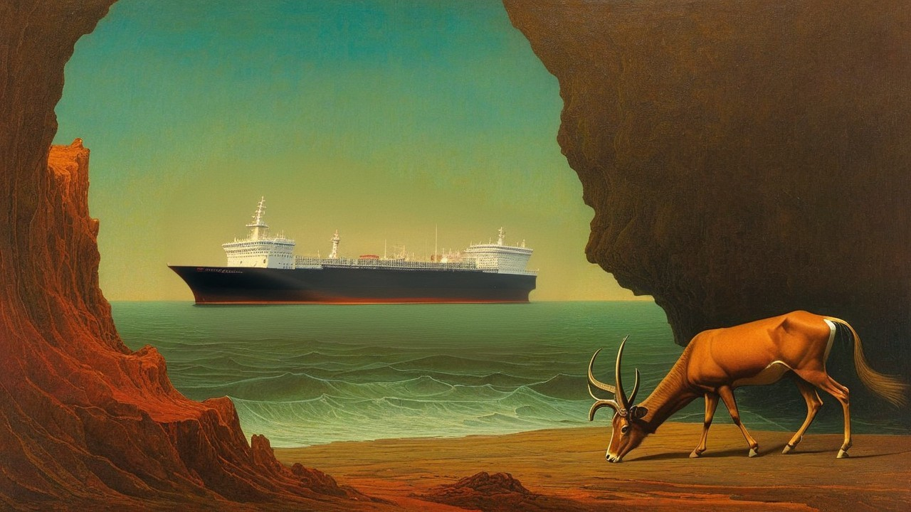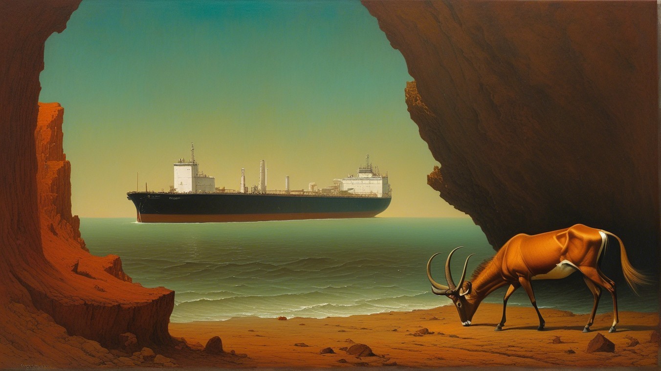 Prompt: Antelope and an oil tanker.