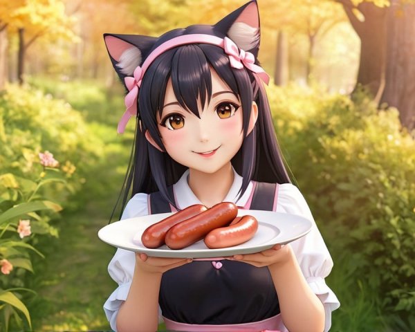 A whimsical scene unfolds as a magical catgirl sets up camp underwater, surrounded by vibrant coral reefs and playful fish. She enjoys a serene adventure, blending nature and fantasy in a captivating world.