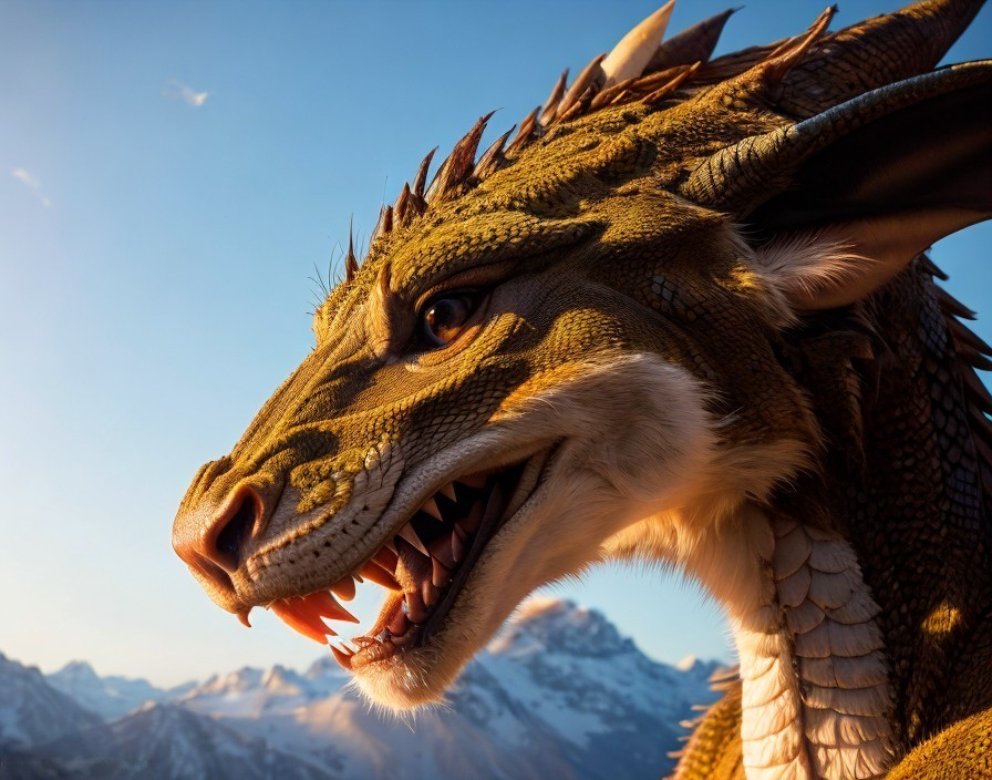 Majestic dragon with detailed scales in mountain setting