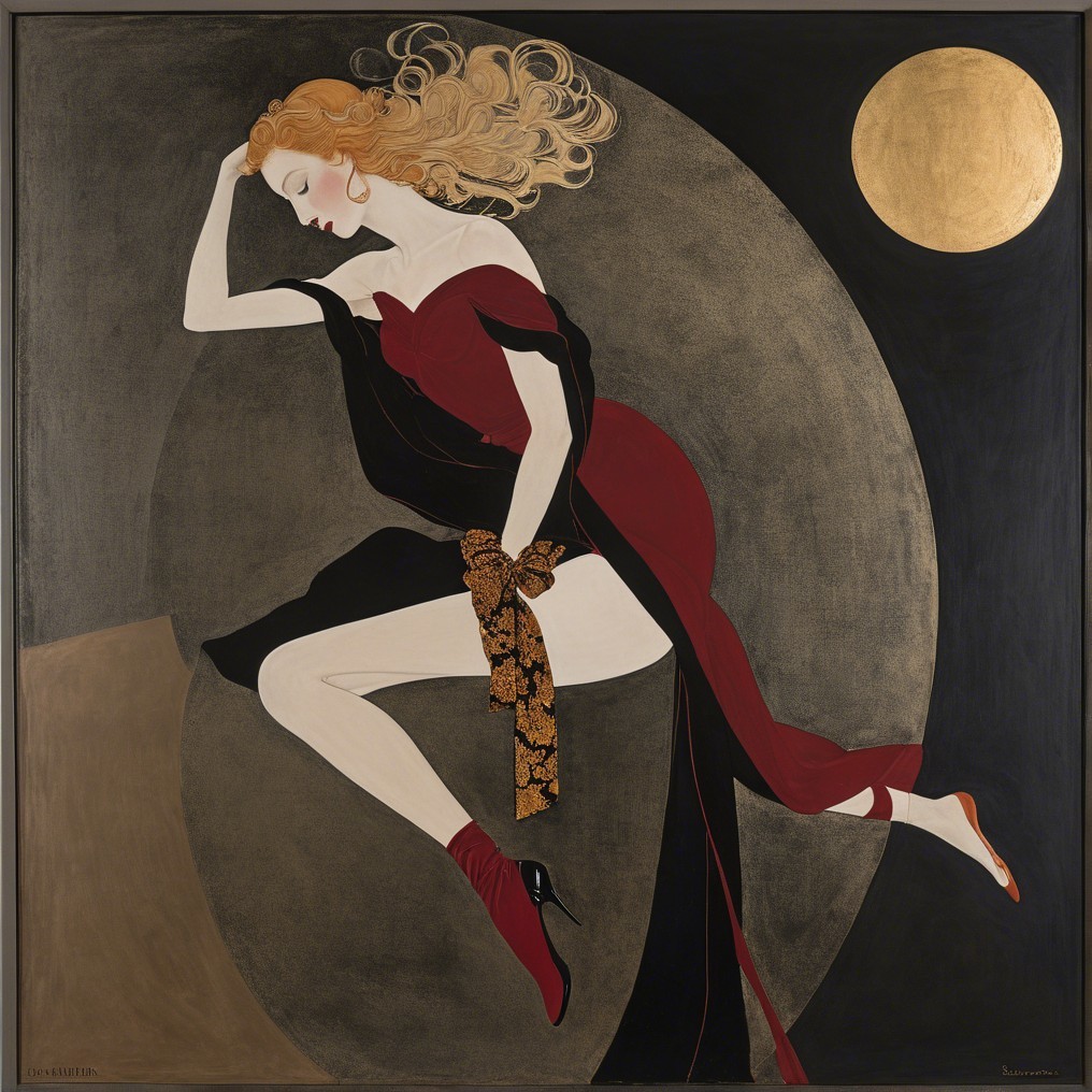 The artwork of Walter Martin Baumhofer and rené gruau is characterized by its whimsical, beautiful, poignant, and touching nature. The color palette often includes shades of rose, gold, rust, burgundy, and black. Artists like Annigoni, Egon Schiele, Milo Manara, Botticelli, Catrin Welz-Stein, Jean Metzinger, and Klimt create soft watercolor pieces with extra water, showcasing an Art Deco style. The attention to detail is evident in the perfect eyes, perfect hands, and highly detailed faces. Complementary colors are used to enhance the overall effect. Watercolor and ink splatters add a dynamic element to the artwork, often set against a dark blue background. Artists like greg rutkowski, loish, rhads, beeple, makoto shinkai, lois van baarle, ilya kuvshinov, rossdraws, tom bagshaw, and alphonse mucha employ techniques like global illumination to create detailed and intricate environments. Other notable artists in this style include Arthur Rackham, Grant Wood, Paul Klee, Lisa Frank, Van Gogh Illustration By Marguerite Delorme, Chokha, Marguerite Zorach, Edward Gorey, and junji ito. The use of gold and silver leaf colors adds a luxurious touch to the artwork