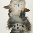 A surreal portrait blends a woman’s face with a dramatic landscape. Towering rock formations rise from her head amidst soft clouds, creating a dreamlike fusion of nature and human features.