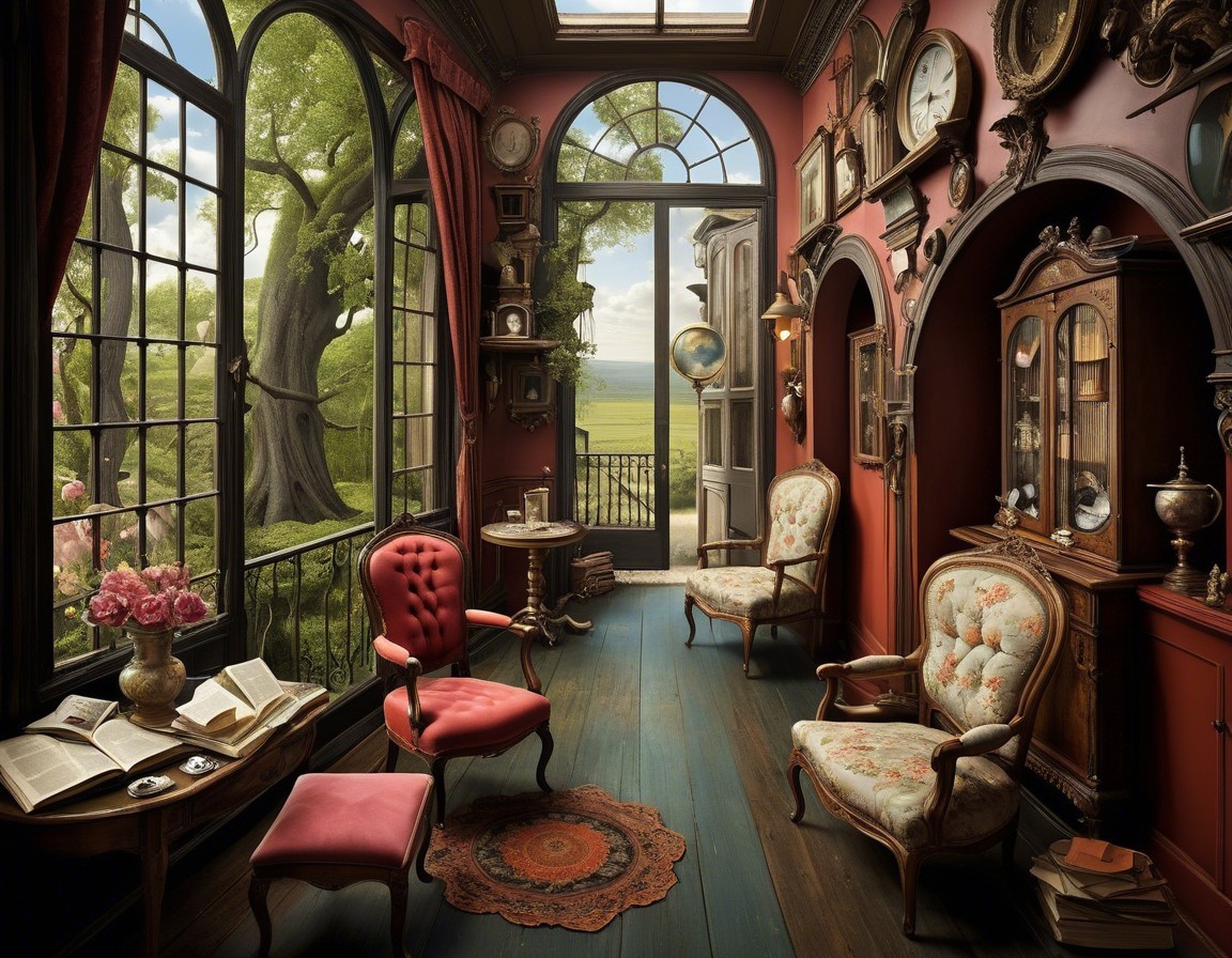 Vintage-Inspired Room with Red Walls and Elegant Decor