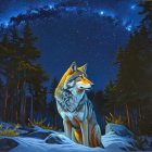 Majestic Wolf-Like Creature in Dimly Lit Forest