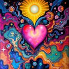 Surreal Heart Artwork with Colorful Cosmic Elements