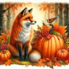 Autumn Serenity: Fox by Pumpkin and Leaves