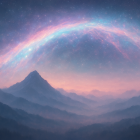 Surreal Landscape with Iridescent Mountains and Galaxy