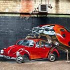 Vibrant Ladybug Mural on Classic Volkswagen Beetle
