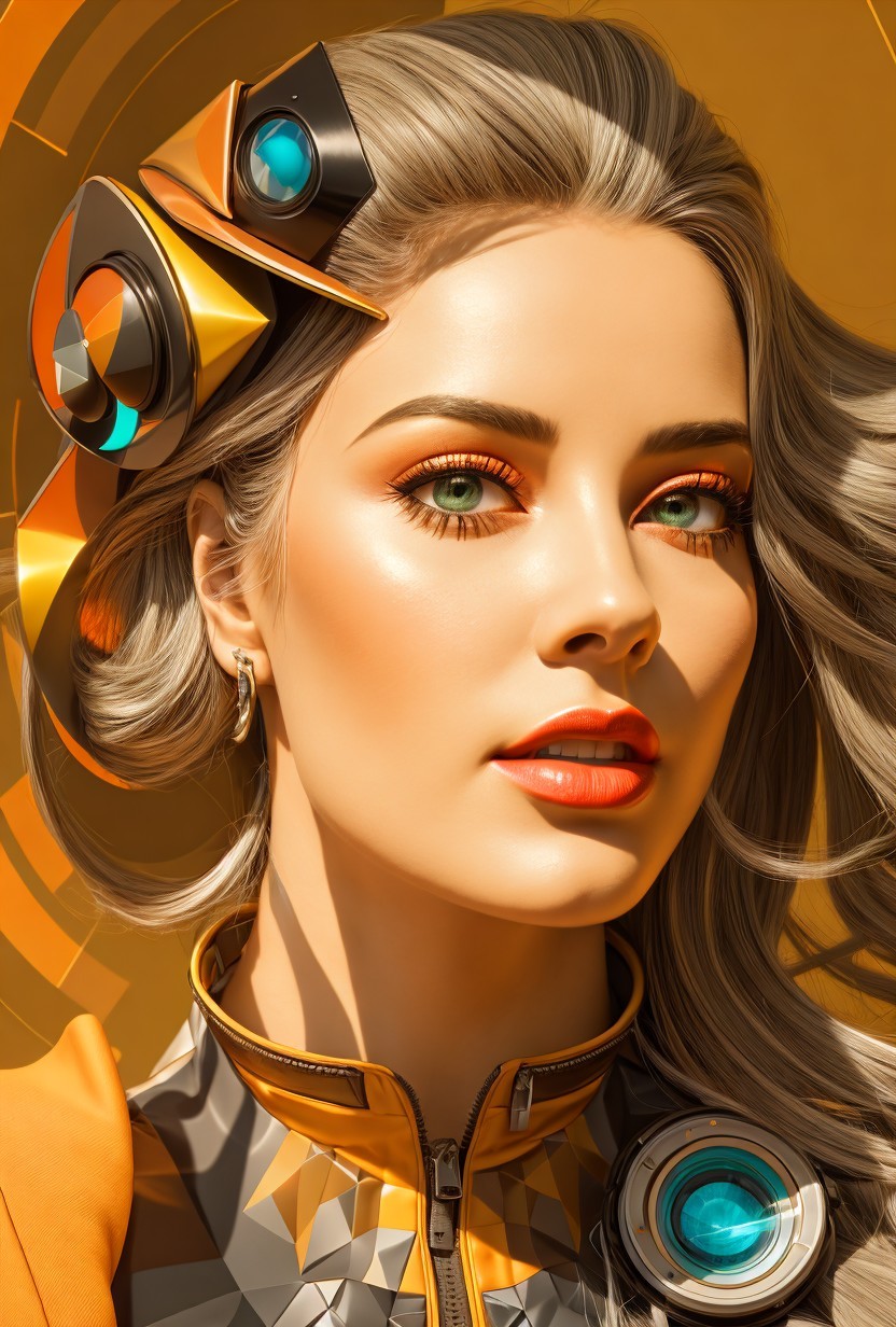 Portraiture,  space age style, 3d effects 1.8, hues, cubistic details, brushed textures, illustrative maximalism, stylized, abstract, geometrical, radiance, plasticity 1.7,  headshot, ambient occlusion 1.5, anisotropic filtering 1.7, raytraced shadows 1.2, wicked eyes, (3d effects 1.8, detailed textures, chipped, dynamic lighting 1.7, (( high coloring 1.9, bokeh effects, (muted colors of beige and auburn, contrast colors, limited palette,) stylized illustration), complexion, plasticity 1.4, intricate ornamental details 1.9) 11:5), digital stylized illustration, fashion photography,, stacked-up perspective, beige rim lighting 1.7), colorful reflections, lavish, dark fantasy art 1.4, octane render illustration 1.5, tints of movie poster art, vector 9:5, beautiful composition 1.9, style of Geof Darrow and Overton Loyd and Susan Seddon Boulet,