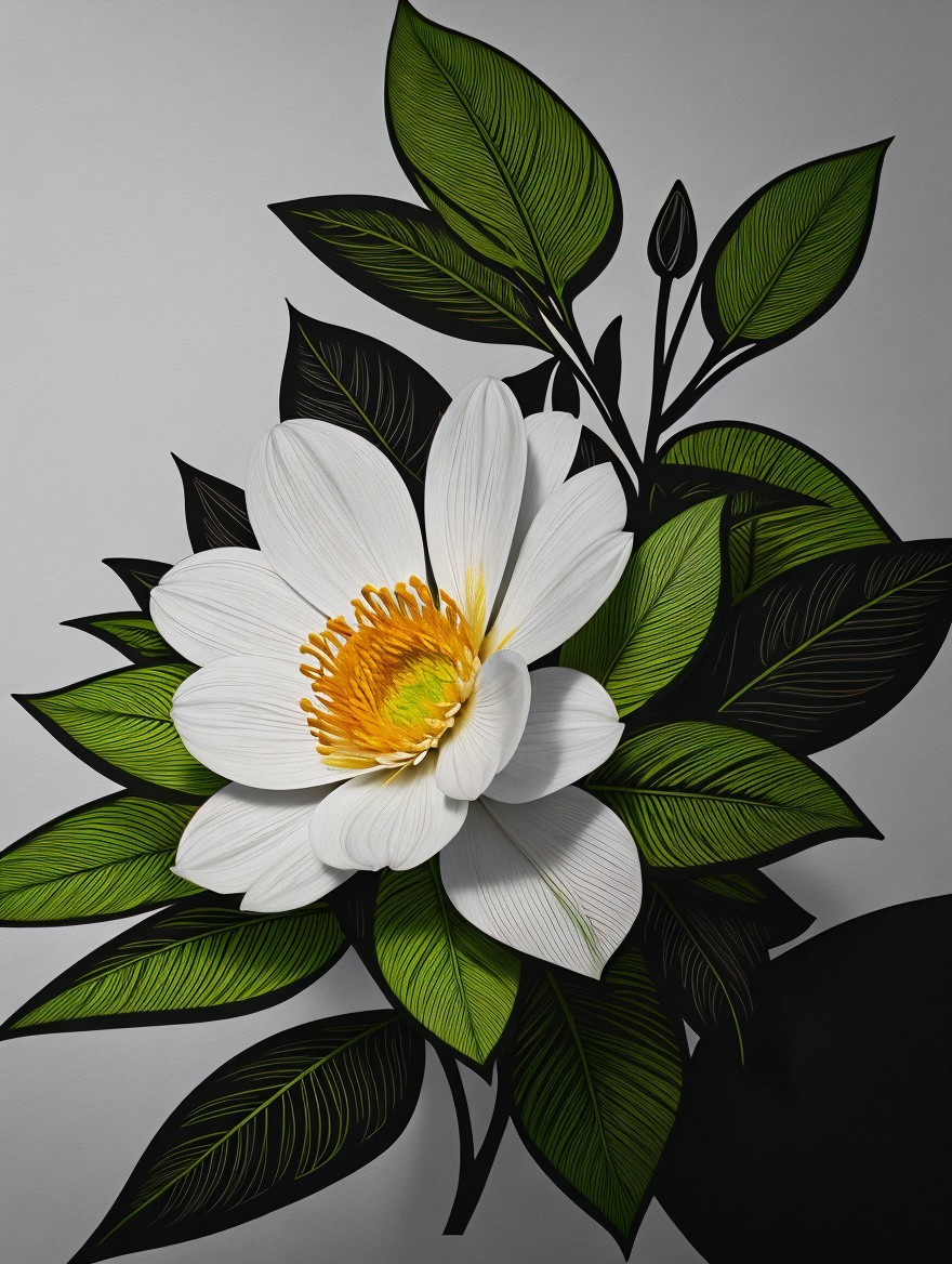 + Prompt:Ink and coloured pencil illustration of a flower, positioned centre, vector-style graphic suitable for t-shirt printing, against a stark white background, blend of hand-drawn texture with digital vector sharpness, ready for silk screen transfer, minimalist colour palette, fashion-forward design, suitable for apparel illustration, high contrast, clean lines, printable vector file, t-shirt mockup ready, negative space exploration, apparel graphic design, silkscreen printing compatible, digital render