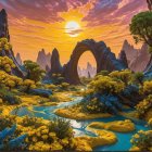 Vibrant Fantasy Landscape with Colorful Mountains and River