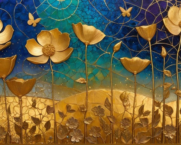 A vibrant, swirling abstract pattern with sunflowers in a basket at the center, evoking a sense of joyful movement and energy.