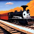 Vintage Steam Locomotive in Futuristic Cityscape