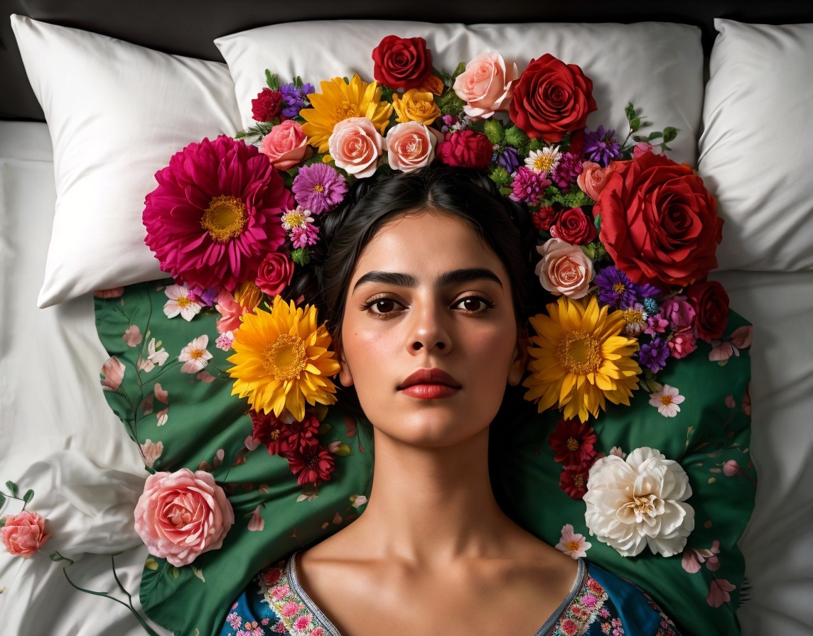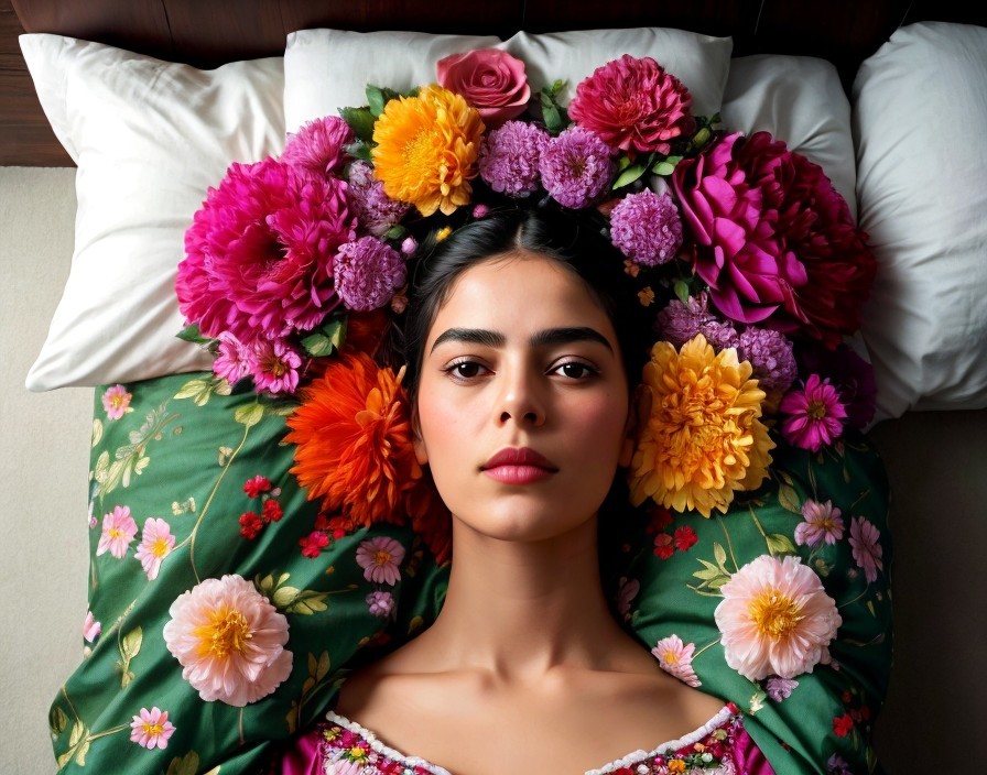 "Life and death are just a blank page apart... Like lying in a coffin surrounded by flowers, I contemplate life lying on a bed adorned with blossoms."