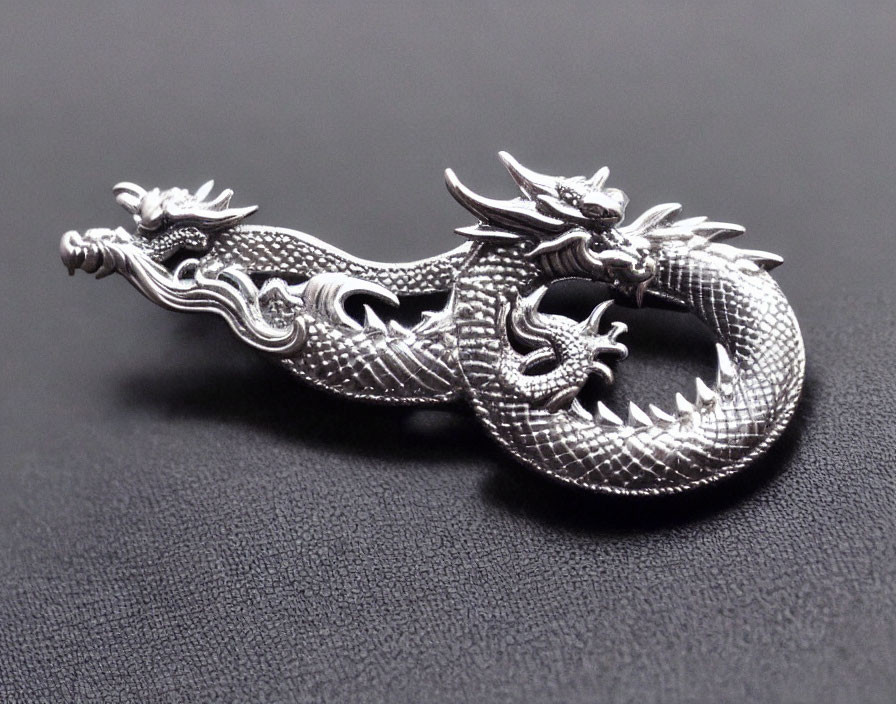 Intricate Metallic Dragon Figurine on Black Textured Background