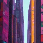 A vibrant LEGO city street scene filled with colorful buildings, bustling traffic, and cheerful minifigures driving vintage cars under a picturesque sky. The atmosphere is lively and dynamic.