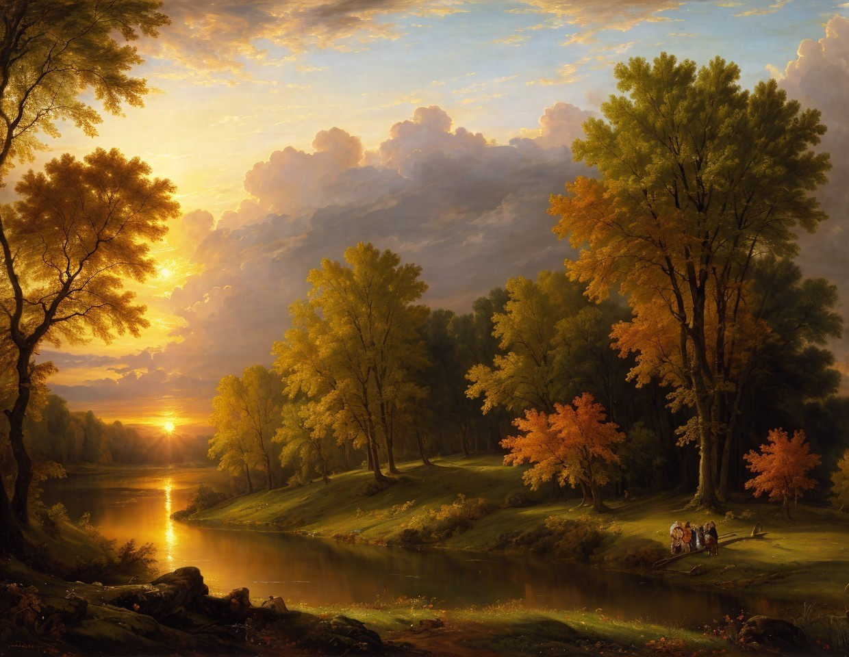 Prompt: "Oil on canvas, wide angle landscape view, a wonderful sunrise. Glowing with vibrant hues. Perfect composition. By Peter Paul Rubens. William Turner. By Pierre-Auguste Cot."