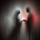 A soft, ethereal scene depicts two people, a woman and a man, holding hands, embracing a joyful bond. The surreal, blurred texture of the background enhances the mystical atmosphere...