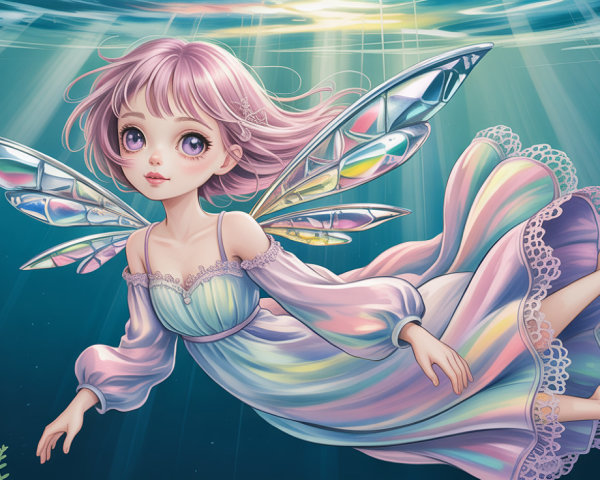 A charming anime mermaid playfully poses in front of a military tank, blending whimsical fantasy with a stark, powerful backdrop. Her vibrant colors and enchanting features contrast with the tank's ruggedness.