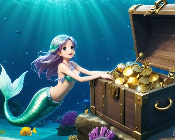 A whimsical anime girl dons a unique swimsuit inspired by tuna noodle casserole, featuring vibrant colors and playful patterns. Her cheerful expression and imaginative outfit bring a fun twist to beach fashion.