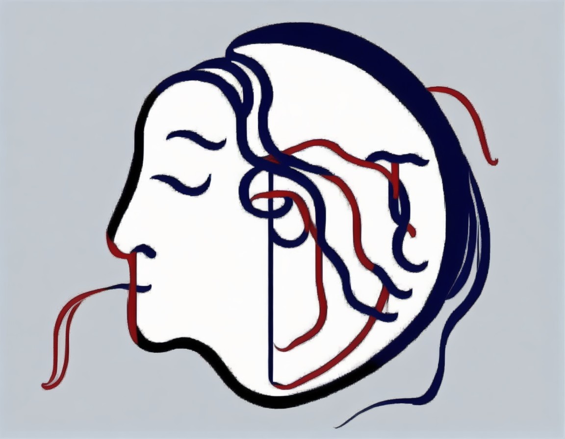Abstract Profile of a Woman with Blue Hair and Red Accents