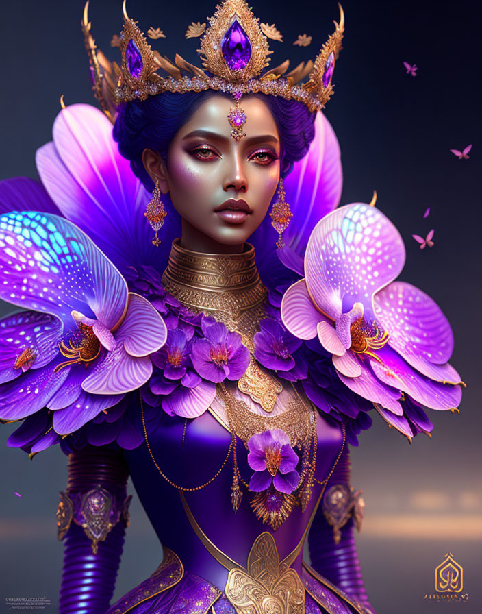 Inswanely Detailed Photograph Of An Elaborate Beautiful purple Orchid owl Woman Goddess Glossy Lipstick Intricate Glistening Skin Face Bright Eyes Mosaic Jelly blu Orchid Crown Hyperdetailed Painting By Ismail_Inceoglu Tom Bagshaw Dan Witz CGSociety ZBrush Central Fantasy Art 4K