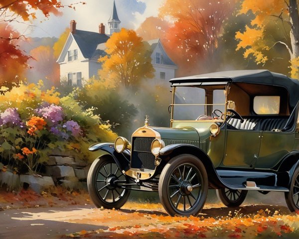 A vibrant abstract landscape features wavy hills in bold colors of red, blue, and green, with silhouetted trees adding depth to the harmonious, dreamlike scene.