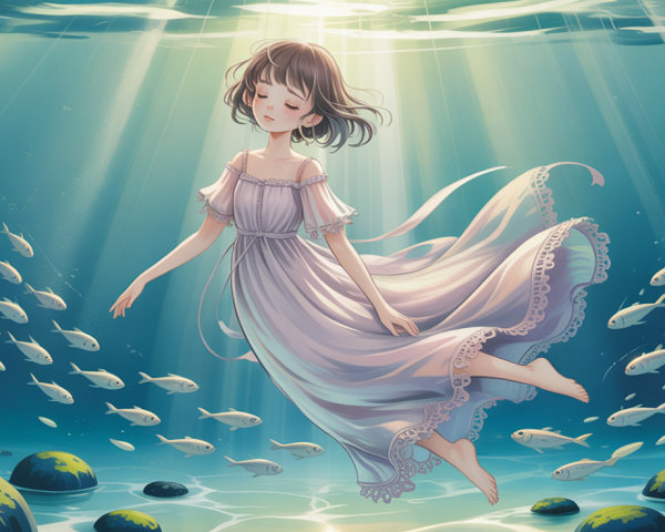 A charming illustration of a girl in a cute anime-style strapless swimsuit, featuring vibrant colors and playful designs. She exudes confidence and joy, embodying a fun summer vibe.