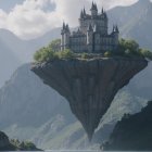 A majestic castle rests atop a floating island, surrounded by lush landscapes and dramatic cliffs. The scene blends elements of fantasy and adventure in a vibrant, imaginative setting.