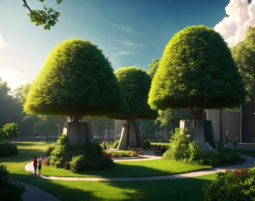 A park in the year 2500 which is only greenery left in the world. All the other parts of the world is filled with concrete and iron buildings