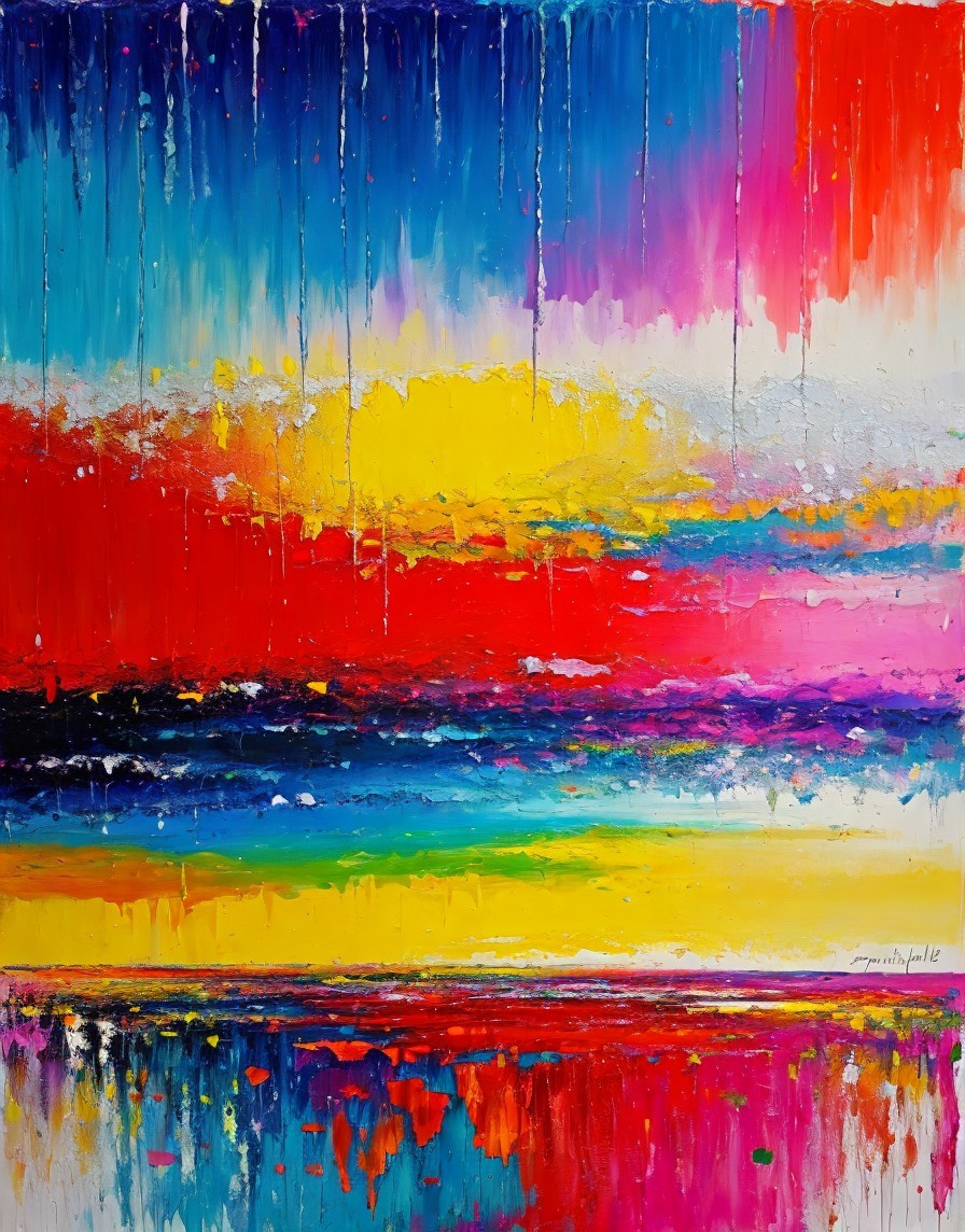 Colorful Abstract Painting with Bold Vertical Streaks and Symmetric Reflection