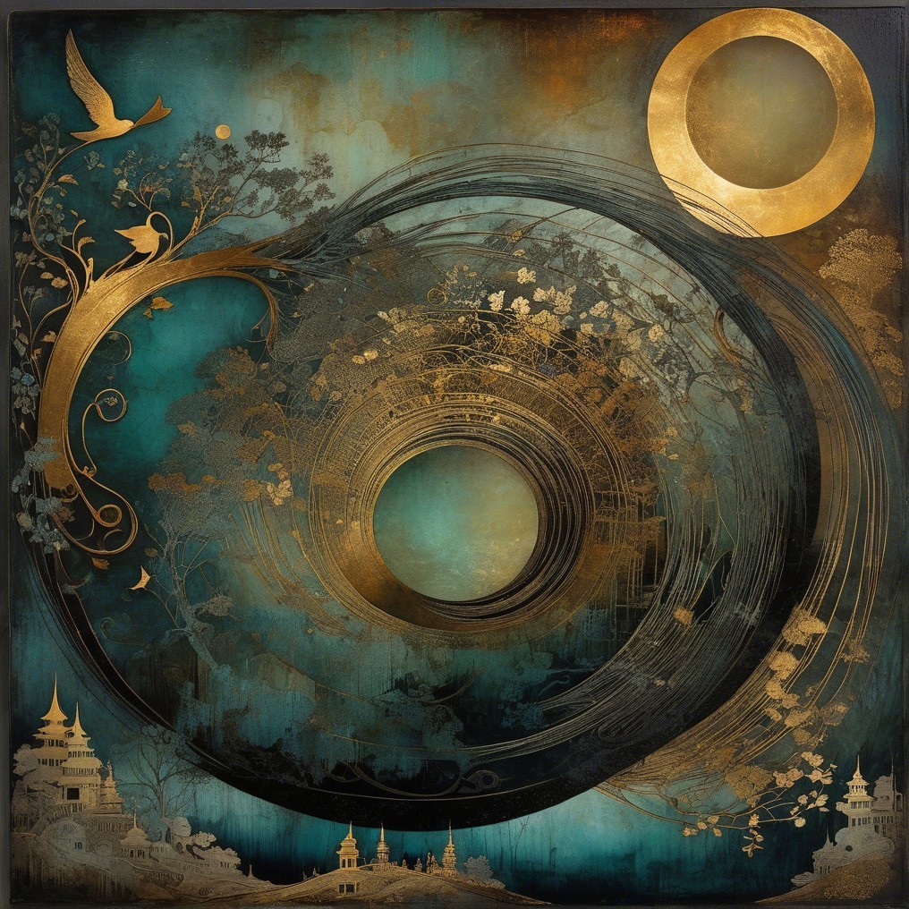 Prompt: With every whisper, you weave tales Of ancient dreams and mystic trails. You, the echo of timeless songs, The right in a world of wrongs. . dramatic,” in the style of Alexander Jansson and Watanabe Shōtei, nostalgia, glory, Mercury Glass patina, light and gossamer haze, topographic lines, Art Brut, moody, somber, desaturated colors. In the style of John Rogers cox . This artwork amalgamates the artistic styles of Michael Parkes,