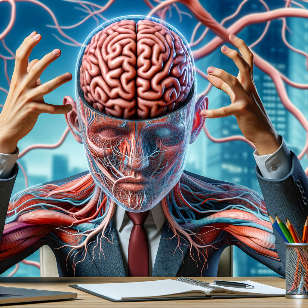 A surreal artwork of a person with an exposed brain and clear head, highlighting the intricate complexity of human anatomy and thought.